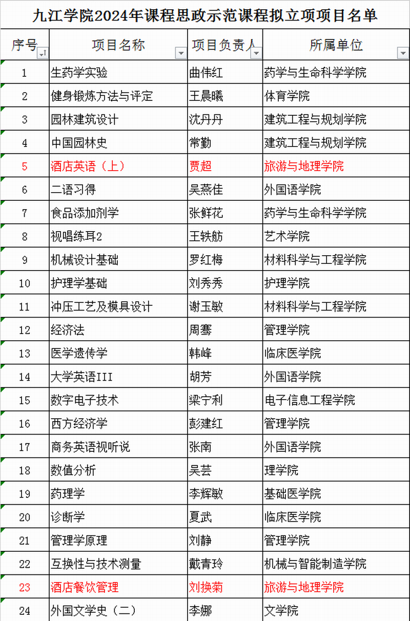 6月24日,学校公布了《关于威廉希尔体育2024年课程思政示范课程拟立项项目的公示》,公司贾超老师申报的《酒店英语(上)》和刘换菊老师申报的《酒店餐饮管理》2门课程获批立项。全校共有35门课程立项为2024年校级课程思政示范课程建设项目。