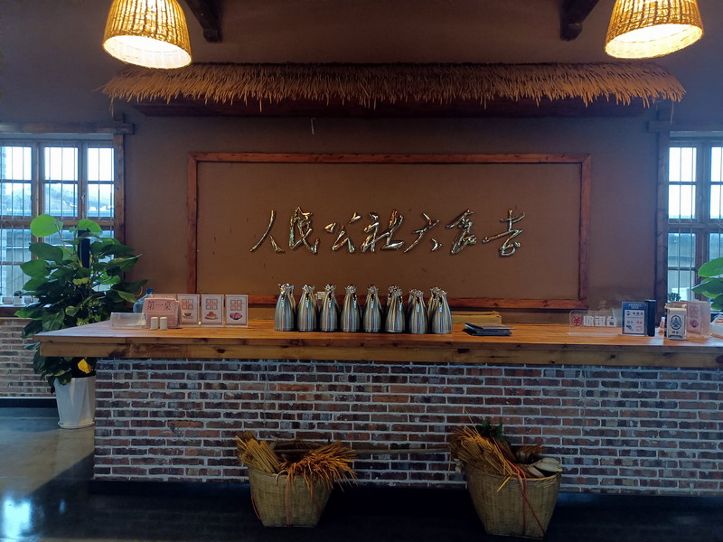 实践队首先来到共青精神体验园,通过走寻探访“解密”共青社一个个小故事。跟随讲解员的脚步,队员们来到灰墙建筑以及印有“扎根农村志不移,广阔天地炼红心”的大门,带着我们穿回垦荒时代。接着,参观了由农仓改造成的可容纳200人的食堂,拥有3口农家大灶的农房,农产品丰富的供销社大楼以及充满历史底蕴的农机厂等,让大家深刻直观地感受到了垦荒运动带来的有效成果。青砖、标语、红旗、手扶拖拉机、老式旧家具、石阶、枕木、木制桁架等等都是垦荒青年们青春的见证,是共青精神发展的痕迹,是故事所在,是圣洁的奉献与拼搏精神的所在。