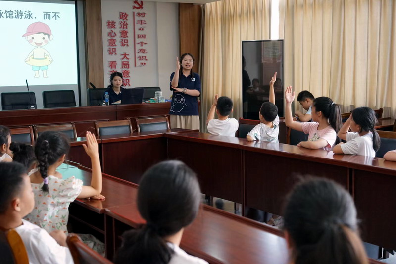 同时,实践队员们还高度重视暑期儿童安全问题,特别安排了防溺水安全教育宣讲环节。通过生动的案例讲解、模拟演练以及自救互救技能的传授,孩子们不仅掌握了防溺水的基本知识和技能,还深刻体会到了生命的宝贵与脆弱。同时,这一环节也让随行家属深受触动,他们纷纷表示将更加注重孩子的安全教育,与学校、社区共同构建起一道坚实的防溺水安全防线。