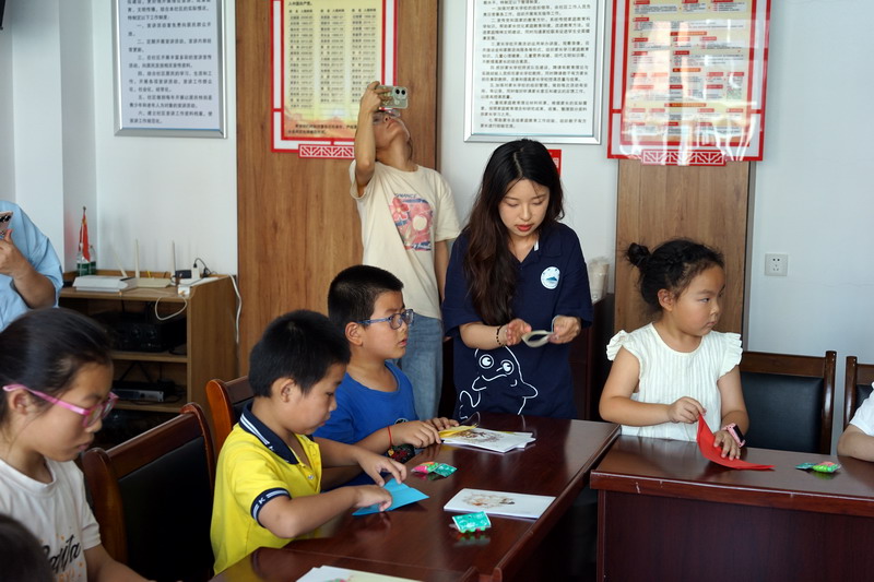 为了进一步巩固科普成果,实践队员们还引导孩子们动手制作江豚折纸、参与“江豚跳”等趣味游戏,让江豚的形象在孩子们的手中跃然纸上,在游戏中栩栩如生。这些游戏不仅加深了孩子们对江豚的认识,更激发了他们保护江豚、关爱自然的热情。