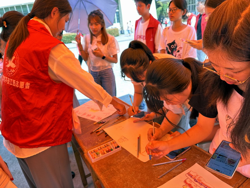 在创作过程中,志愿者们不断鼓励同学们发挥自己的想象力和创造力,用独特的视角和方式表达对祖国的热爱。他们还为同学们提供了丰富的素材和资料,帮助他们更好地完成作品。经过两小时的创作,一幅幅色彩斑斓、充满创意的作品呈现在了大家面前。每一幅作品都饱含着同学们的汗水与心血,都凝聚着志愿者们的智慧与付出,这些作品不仅展现了同学们的创意和想象力,更体现了他们对祖国的热爱和祝福。整个现场洋溢着浓厚的爱国氛围,成为了一道亮丽的风景线。
