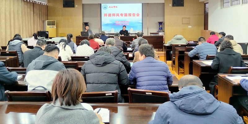 为深入贯彻落实党的二十大和二十届二中、三中全会及习近平总书记在全国教育大会上的重要讲话精神,弘扬崇高师德风范,提高教师爱岗敬业的责任意识,树立优良师风。12月4日下午,威廉希尔官网在竞知楼512会议室举行师德师风专题报告会。本次报告会由护理学院人文教研室主任倪竞博士主讲,学院全体教职工参加了本次报告会,会议由党委书记夏英主持。