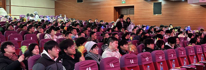 晚会在全体表演者合唱的《飞流直下》中落下帷幕,为2024级新生献上新征程启航的祝福。我们都曾是少年,我们都曾拥有一颗炽热的心,都曾恣意人生。“少年”是梦想、是热血、是勇敢无畏的集合体,愿所有人都能带着那份火热拥抱美满的人生。在充满活力的歌声中,全体演员上台,向观众挥手致意,全场观众不约而同挥动手中荧光棒齐声哼唱,气氛愈加热烈,欢呼声、呐喊声不断。在歌声结束时,晚会也落下帷幕。