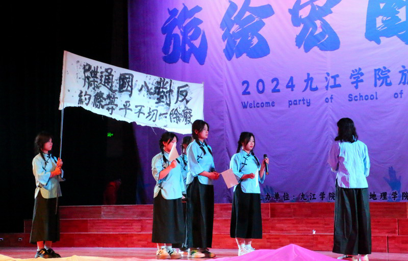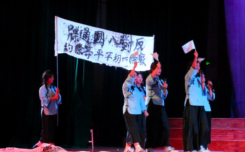 在晚会的第二篇章“革命颂歌,热血华章”中,团委组织部、宜传部的同学们带来话剧《沉默中的呐喊》,真情演绎了1926年那个动乱的年代,家国危难,列强瓜分,军阀混战,山河破碎。以刘和珍为首的爱国员工群情激愤,游行示威,奋起反抗,一同掀起了反对帝国主义、反对军阀卖国贼的革命斗争。他们用自己的身躯,诠释着“誓为中华奉我魂”的伟大精神。鲁迅先生面对爱国青年的不幸罹难,也发出了“不在沉默中爆发,就在沉默中灭亡”的竭力呐喊。所谓勇者,不仅指横刀立马的英雄壮士,还有不让须眉的巾帼英雄。时至今日,我们不愿再看到那枪林弹雨、烈士死难,但回眸那动乱的岁月,我们依然渴望并期待着,刘和珍那大无畏的精神以另一种形式注入国人的灵魂。