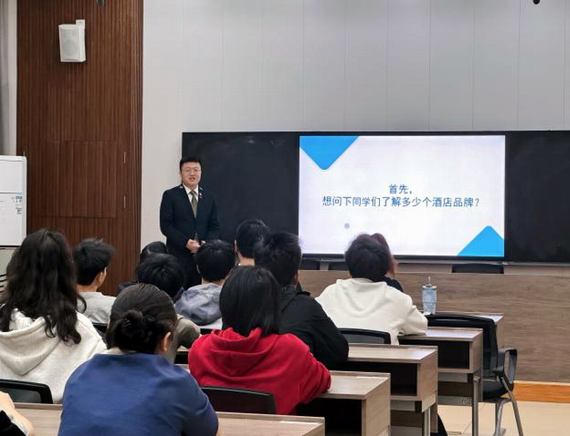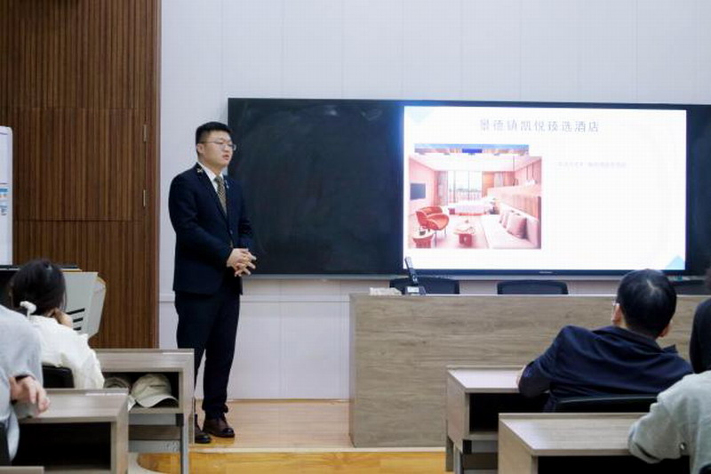 讲座中,聂镜薪以真实职场场景为切入点,多维度阐释酒店英语在职业发展中的关键作用。从“面试环节的英语自我介绍技巧”“前台接待中的跨文化沟通案例”,到“高层管理会议的专业术语应用”,他通过亲身经历与行业前沿动态,系统解析了英语能力在提升服务品质、拓展国际视野及推动管理创新中的实践价值。“语言不仅是工具,更是职业素养的体现。掌握酒店英语,意味着掌握打开全球化职业大门的密码。”聂镜薪总结道。