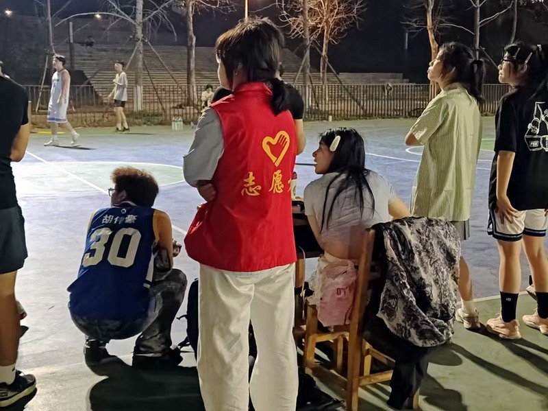 比赛之初,志愿者们便迅速投入筹备工作之中。每场比赛前,他们总是早早抵达场地,摆好饮用水,急救物资等,为比赛做好准备工作。比赛开始后,他们认真记录比赛得分、计时,时刻保持专注,确保比赛数据的准确无误。在运动员们于球场上奋力拼搏时,志愿者们则默默化身贴心“后勤兵”,及时为运动员们递上饮用水,时刻留意他们的身体状况。一旦有运动员意外受伤,志愿者们会第一时间冲上前,积极协助医护人员进行紧急处理,给予受伤运动员及时的关怀与帮助。除了悉心服务运动员,志愿者们也积极为观众提供引导服务。场外,志愿者们还化身“气氛担当”,每当有队员进球时,他们便组织观众有序鼓掌庆祝,刹那,场内掌声如雷。同时,他们也热情地为观众解答疑问,维护现场秩序,为比赛营造了良好的观赛环境,让观众能够全身心投入到紧张激烈的比赛中。