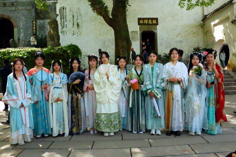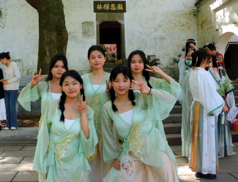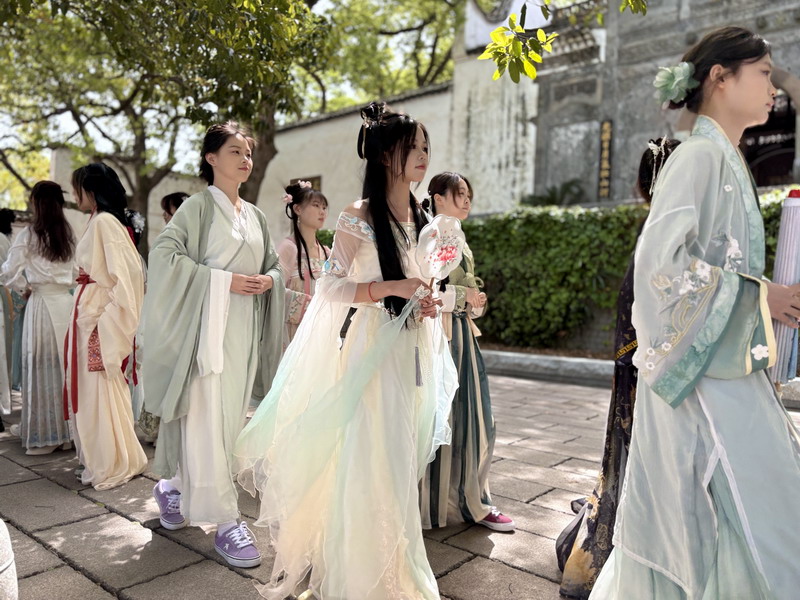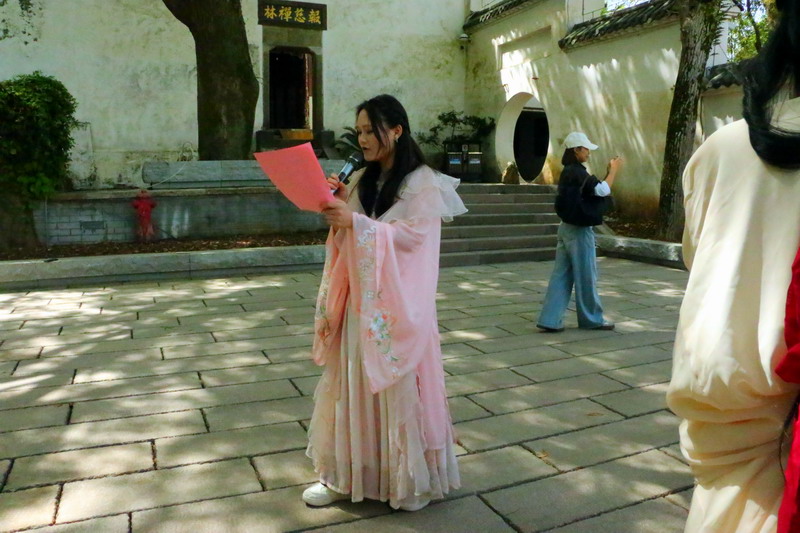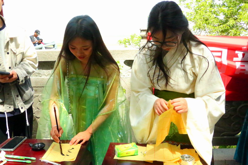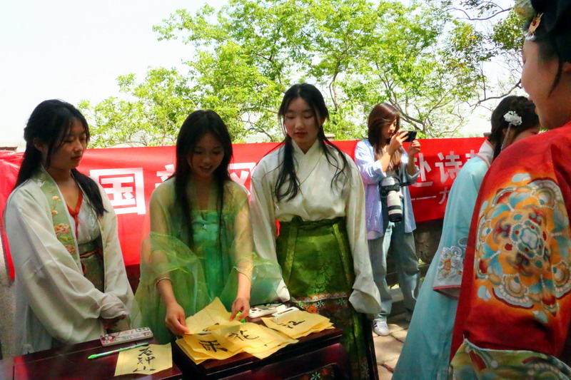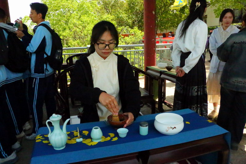 紧接着,礼仪队带来汉服走秀,为观众展示汉服之美。在活动中,投壶、emoji猜成语、“三二一看这边”等游戏妙趣横生,同学和游客们踊跃参加。最后,由茶艺队带来的茶艺表演作为谢幕,在袅袅茶香中,本次诗会画上完美的句号。主持人致结束语,以铿锵有力的声音传递对春天的赞美与对未来的憧憬,为诗会画上圆满句号。