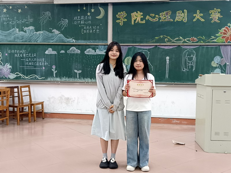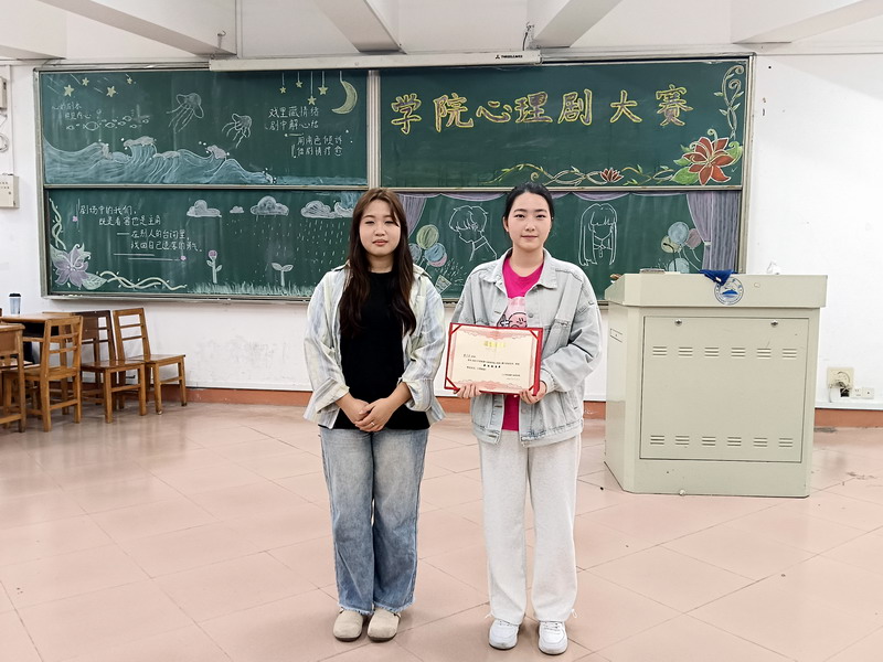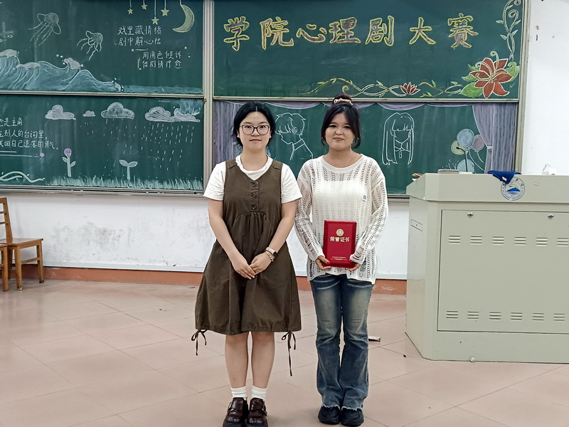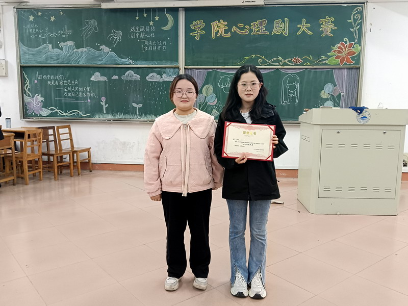 舞台上,灯光与音效的精妙配合、演员对道具和空间的创意运用,将抽象的心理活动具象化为震撼人心的戏剧画面。这不仅考验着演员们对角色情绪的精准把控,还向观众们展示了团队中的默契配合。这样精彩绝伦的心理剧也引发了在场师生对心理健康的深刻思考。经过激烈比拼,A2452班《镜中自我》凭借细腻表演摘得桂冠,A2411班《校园里的阴影与光》、A2421班《破茧重生》分获二、三等奖。孟紫仪同学荣获最佳编剧奖,凌悦、黄宇萍同学分别斩获最佳主角奖与最佳配角奖,曹铭老师为获奖团队及个人颁发了荣誉证书与奖杯。