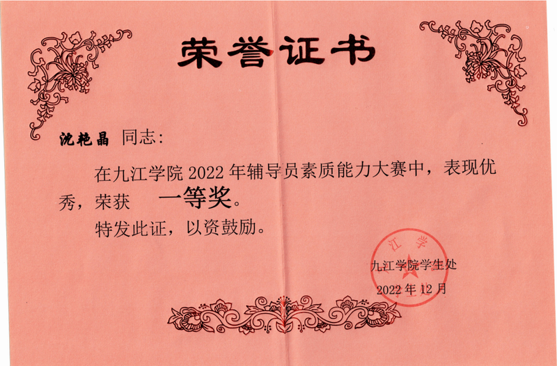 她像一盏明灯,照亮了员工前行的道路。她的关怀和辅导让每一位员工都感受到了温暖和力量。她先后获校辅导员素质能力大赛一等奖、校优秀班主任和优秀教育工作者等荣誉,深受师生喜爱。