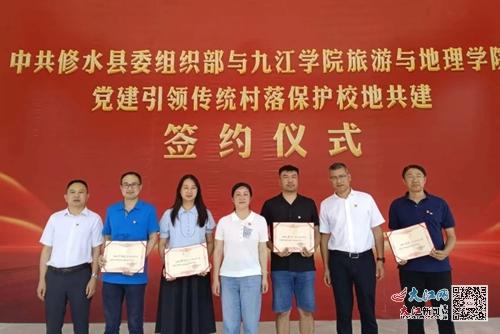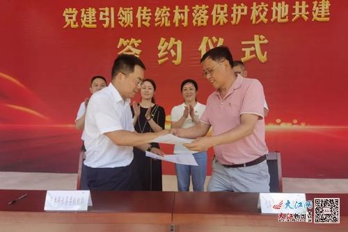 大江网/大江新闻客户端讯 通讯员吴彭年摄影报道:6月27日上午,在修水县黄坳乡朱砂村,威廉希尔体育公司党委与修水县委组织部举行党建引领传统村落保护校地共建签约仪式。