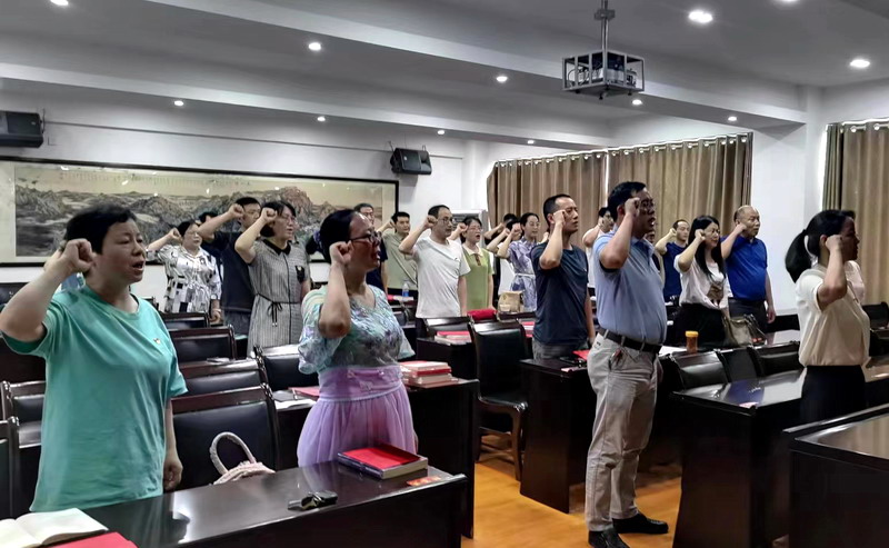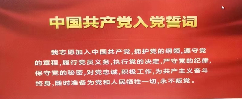“我志愿加入中国共产党,拥护党的纲领,遵守党的章程,履行党员义务……公司党委书记夏英同志领誓,全体党员一起重温了入党誓词,再次接受誓言洗礼,用铿锵誓言再次提醒共产党人要时刻践行初心和担当使命。