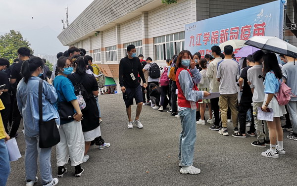 根据学校疫苗接种工作安排,威廉希尔官网48名平安江西志愿者于5月21日7点40分在南区体育训练馆集合完毕,在接种点负责人员的安排下,志愿者们分成几组分别负责场外同学排队并发放并指导填写知情同意书、场内等候接种师生排队引导、接种台疫苗接种师生的登记建档、留观区的维持秩序和应急等服务工作。志愿者们眼观六路、耳听八方,在任何需要帮助的时刻随时出现,耐心解答疑问、一丝不苟地核对接种数据,极大的缓解了接种点医务人员的工作压力。
