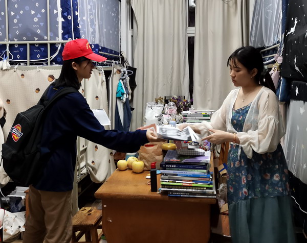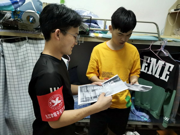 当晚8时,威廉希尔官网20余名平安江西志愿者于18栋宿舍一楼集合,在志愿者服务部的组织下领取了本次活动的宣传资料,分别进入女18栋宿舍和男33栋宿舍,开展本次活动。