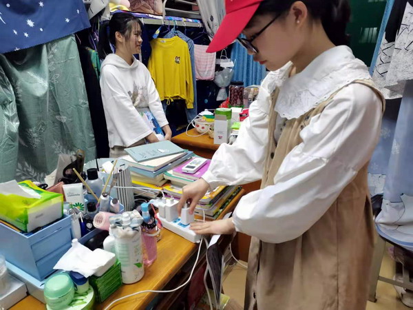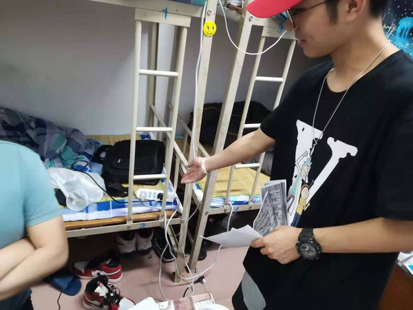 志愿者们向同学们讲解了防灾减灾知识,着重介绍了“地震避险自救互救常识”、“电器火灾的预防”、“电器火灾的扑救常识”,随后逐楼层逐寝室指导同学们排查私拉电线、大功率电器等宿舍违规用电的火灾隐患。
