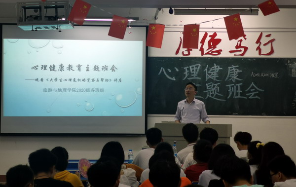 5月25日是全国老员工心理健康日,根据学院“不负韶华,出彩青春”心理文化节相关安排,为加强员工心理健康知识的宣传与普及,促进同学们自觉维护自身心理健康,同时增强班级凝聚力,构建和谐校园,5月9日晚,旅游与地理学2020级同学在竞知楼四楼各班晚自习教室举行心理健康教育主题班会。