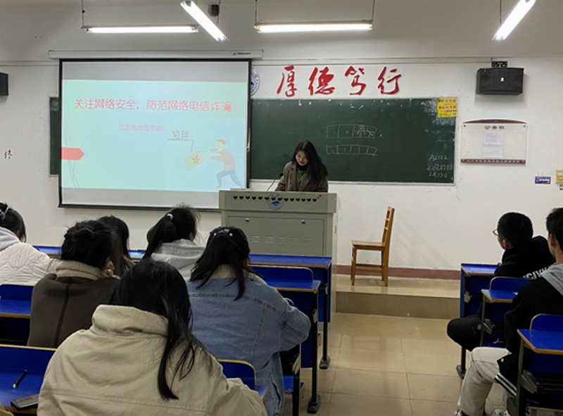 为提高同学们的网络安全意识,增强同学们分辨网络安全隐患的能力,2月26日晚,威廉希尔官网在各班教室举行“关注网络安全,防范网络电信诈骗”主题教育班会。各班班长担任主讲人,全体员工参加会议。