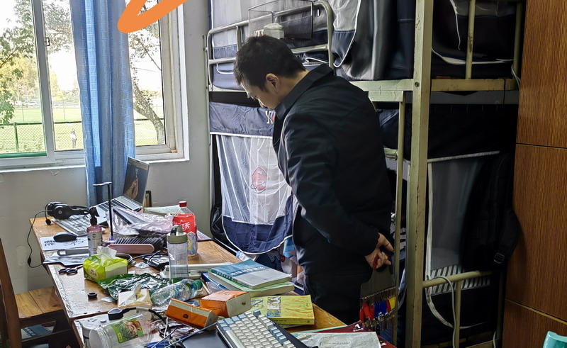 本次检查以检查安全隐患—大功率电器、刀具、易燃易爆物品,明火隐患—酒精炉、吸烟,床铺、桌面内务整理情况等为重点内容。全体检查人员做到全面细致,将检查结果分类记录,发现违规物品当场收缴,同时耐心做好员工的安全教育工作。在检查的过程中,辅导员老师们对宿舍安全和卫生存在问题的员工进行了指导和教育,帮助他们提高安全意识,引导员工主动培养良好的卫生习惯。同时,还详细询问了同学们近期的学习和生活情况,听取了同学们对学院教育管理服务等方面的意见和建议。