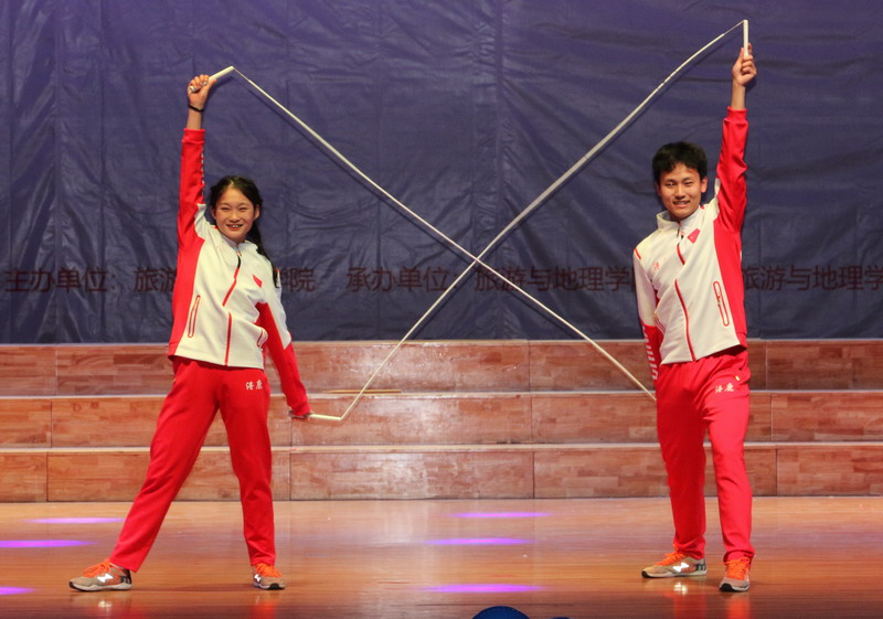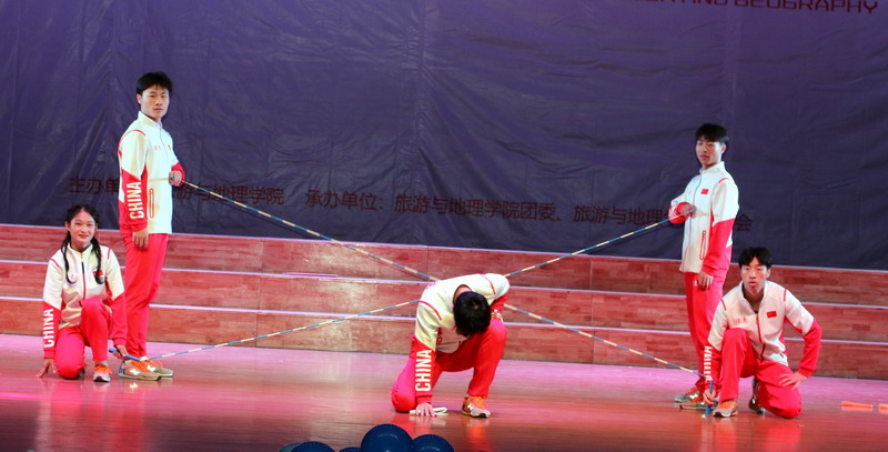 由威廉希尔体育花样跳绳队带来了花样跳绳《浔梦少年》精彩绝伦,吸人眼球。同学们以单脚跳、单脚换跳、双脚并跳、双脚空中前后与左右分跳、多人跳等多种方法,并将舞蹈元素融入绳操中,在跳绳的过程中翩翩起舞,展现出优美的舞姿。将武术元素与跳绳相结合,展示出刚劲有力的动作,体现了中华武术的魅力,诠释了当代青年的澎湃活力,全方位展示了现代跳绳运动的魅力,让观众们看到了花样跳绳的多样性与技巧性的同时,也带给了全场观众美的享受。