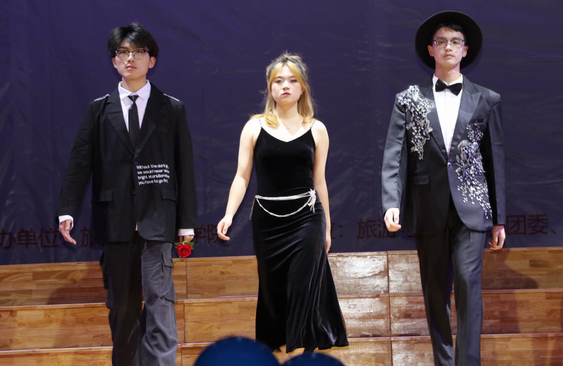 在晚会的第四篇章“不负韶华,共筑华章”中,由员工会礼仪队表演的同台走秀《Brcath of the rainnight》集结了旅院的俊男靓女,用情景式演绎与时装走秀相结合,用时尚化、国际化的表达方式,为大家呈现一场全新的时尚视觉盛宴。表演者漫步摩登舞台,用优雅的步伐,诠释了青春的美好,展现出青春的无限可能,把晚会推向又一个高潮。