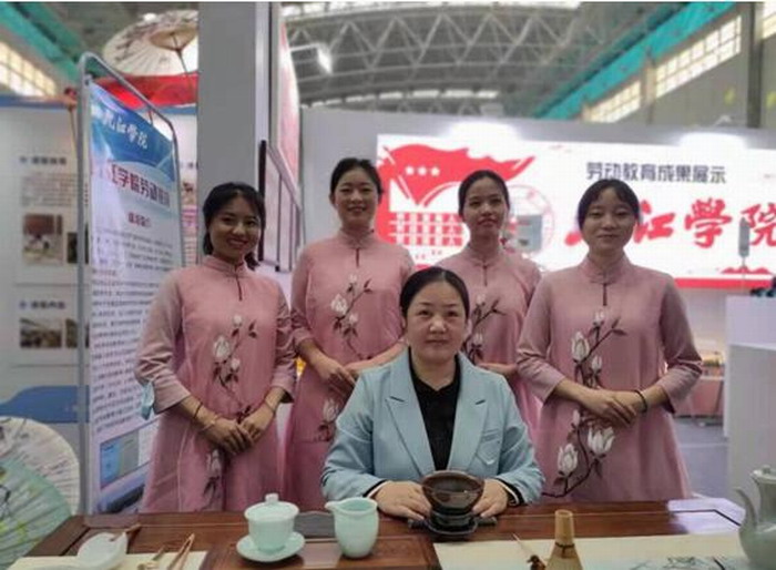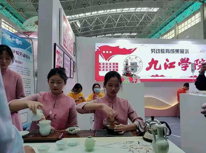 10月29日,2021年江西省高校劳动教育成果展示交流会在江西财经大学举行,全省40所高校参会。威廉希尔官网派出了由杨婵容老师带队、旅游A1811班的耿家维、李婷同学和旅游A2012班的张琪、张建英同学组成的茶艺队,带着盖碗泡修水宁红功夫茶与庐山云雾、宋代点茶2项劳动教育项目走进现场,展示成果,交流学习。