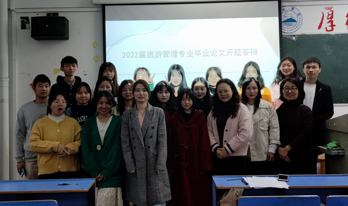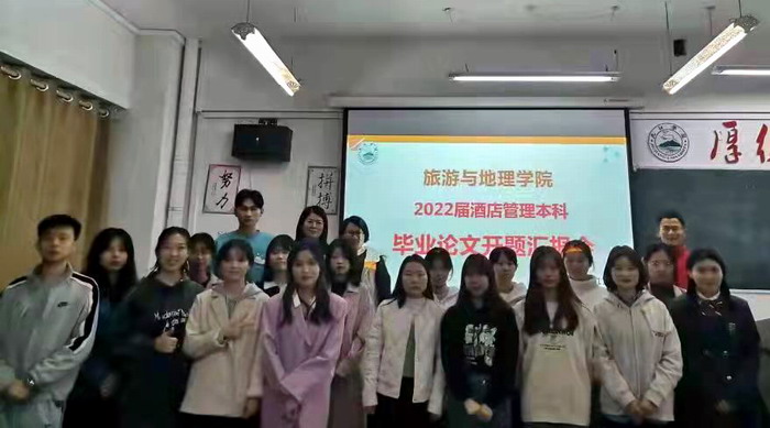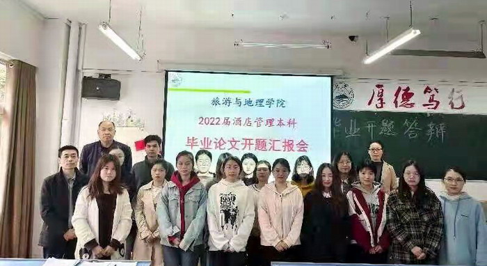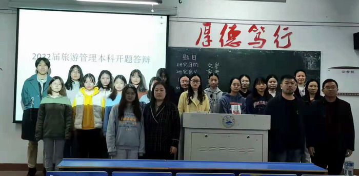 按照学院2022届本科毕业论文工作安排,10月20日下午,威廉希尔官网2022届本科毕业论文开题答辩会在竞知楼顺利进行。答辩导师组由学院相关专业指导教师共49人组成。学院2022届旅游管理、酒店管理、地理信息科学、地理科学、人文地理与城乡规划五个专业295名毕业生分为15个小组进行了开题答辩汇报。