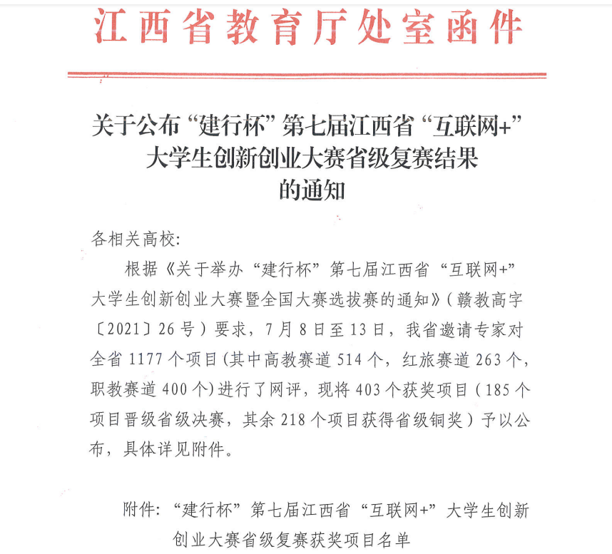 据悉,7月8日至13日,江西省邀请专家对全省1177个项目(其中高教赛道514个,红旅赛道263个,职教赛道400个)进行了网评,共评出403个获奖项目,其中,185个项目晋级决赛,218个项目获得省级铜奖。公司共有5个项目获得铜奖。
