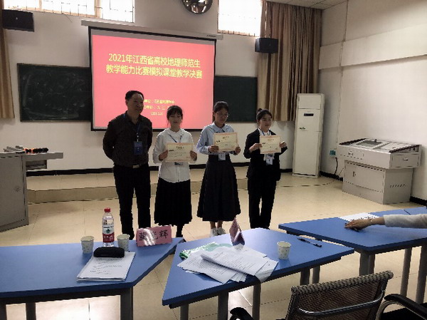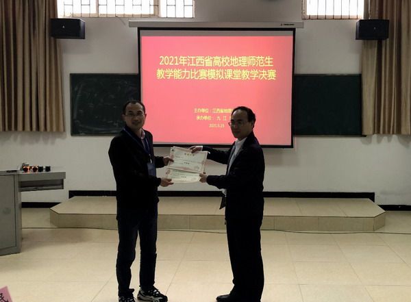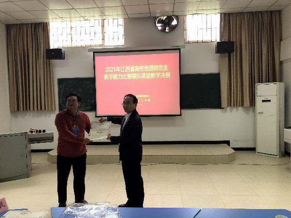 5月22日-23日,由江西省地理学会主办,威廉希尔官网承办的2021年江西省高校地理师范生教学能力比赛在校成功举行。江西省地理学会理事长舒晓波教授、江西省地理学会秘书长刘影教授,江西师范大学科学技术学院蒋梅鑫教授、江西师范大学地理与环境学院叶滢教授、上饶师范学院历史地理与旅游学院金姝兰教授、宜春学院文学与新闻传播学院易清传副教授、赣南师范大学地理与环境工程学院郑著彬副教授、南昌市实验中学特级教师黄秋根、九江市第一中学高级教师蔺光辉、江西师范大学附属中学高级教师吴慧伟,威廉希尔体育教务处处长王侃民教授,威廉希尔官网经理李松志教授、威廉希尔官网副经理孙冬英教授等代表出席了本次活动。