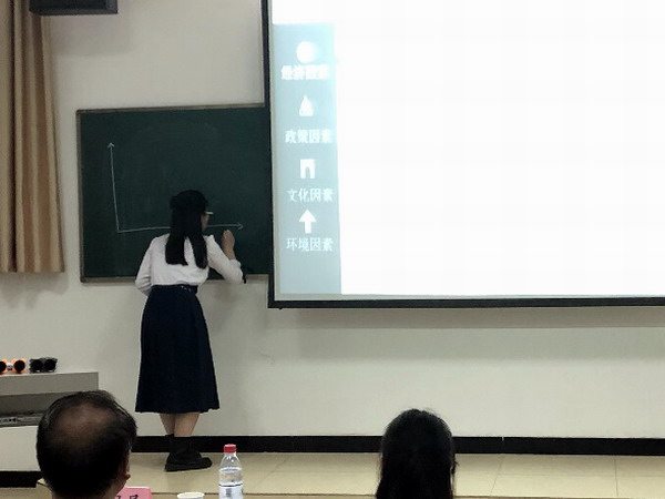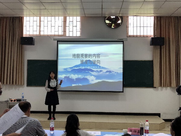 比赛过程中,参赛选手表现出扎实的地理教学能力,选手们仅用一晚就充分准备好了教学设计,课件及模拟课堂教学流程。选手们流畅的教学设计介绍,背后是对中学课本和课纲的吃透;精美的ppt,包括各种音频,视频,动画,3D模型及VR演示,充分显示了同学们强大的教学手段应用能力;此外,各位选手还发挥各种巧思,讲到资源环境承载力,就联系第七次人口普查和袁隆平院士的杂交水稻为中国人民吃饱饭的事迹,讲到城市功能分区,就举天虹老板购买土地的租金故事,讲到滑坡泥石流,就展示昨天天气预报中九江部分地区为泥石流高风险区,选手们将课本的知识实实在在的和我们的生活联系在了一起,充分发挥出地理和生活关系密切的优势,切实有助于提升中员工学习地理的兴趣和动力。