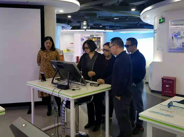 在国泰安智慧实训应用软件产品体验区,在公司技术研发人员的性能介绍与使用指导下,张辉等4位教师先后兴致勃勃地体验了花艺VR实训系统和餐饮VR实训系统,并详细了解了这两款软件的应用环境和客户使用情况。