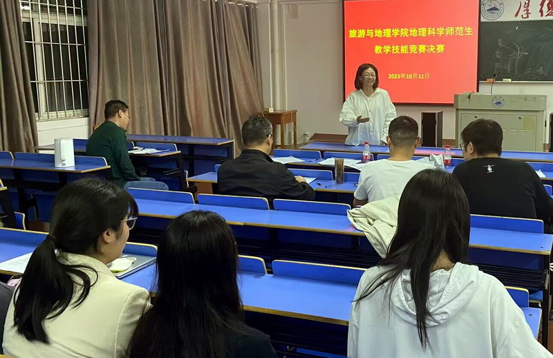 决赛于10月11日在竞知楼606教室举行。地理科学教研室特邀请中学地理高级教师、濂溪区教科所所长周曙光老师和学院孙冬英副经理担任评委会主席,组成了以赵军凯、祝明霞、张力、周之良、李胭胭等教学经验丰富的老师的评委团队。比赛于当日下午3时开始,一直持续到晚上9时结束。比赛精彩纷呈,18选手们准备充分,教学过程设计合理,语言表达准确生动,教学方法独特新颖。选手们自然流畅,富有创意地语言;端庄大方,挥洒自如的仪态彰显出了公司师范生们扎实的教学基本功以及洋溢着朝气与热情的风采,赢得老师和观摩的同学的阵阵掌声。最终杨慧琳、从宇佳、唐怡平3位同学脱颖而出,获得特等奖,并代表学院参加“田家炳杯”校内选拔赛。