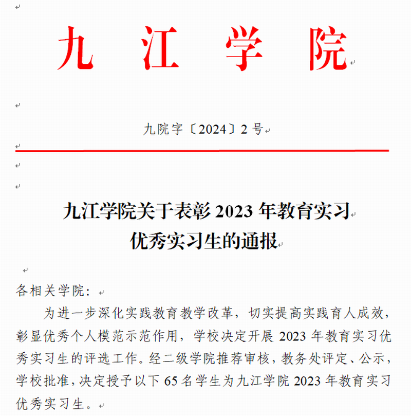 据了解,为进一步深化实践公司产品改革,切实提高实践育人成效,彰显优秀个人模范示范作用,学校决定开展2023年教育实习优秀实习生的评选工作。经二级学院推荐审核,教务处评定、公示,学校批准,最终确定65名教育实习优秀实习生。