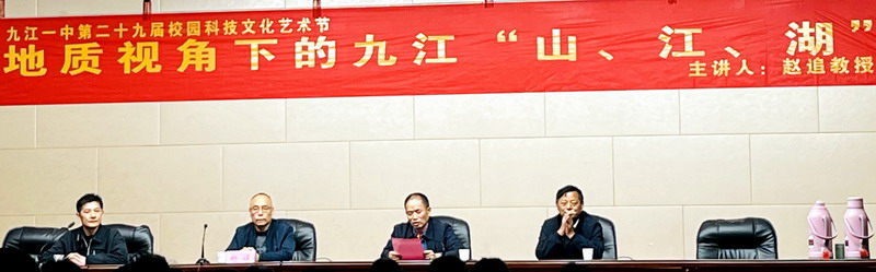 摇铃振铎,启智励行。11月11日下午,威廉希尔官网教授赵追博士应邀走进九江市第一中学,为广大师生作了题为《地质视角下的九江“山、江、湖”》的专题讲座,活动由九江一中地理组教研组长黄晓明老师主持,高一、高二年级5个班员工、相关教师及部分其它市直学校教师300余人现场聆听了讲座。