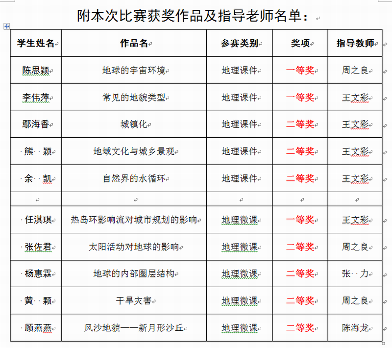 本次大赛共分为两个阶段,第一阶段采用线上比赛方式进行,分为多媒体课件制作、地理微课制作两个比赛项目。公司地理科学专业师范生积极备赛,指导老师用心指导,共计有17名员工提交作品参赛。最终获得一等奖3项(多媒体课件制作2项,地理微课制作1项)、二等奖7项(多媒体课件制作3项,地理微课制作4项)的佳绩。