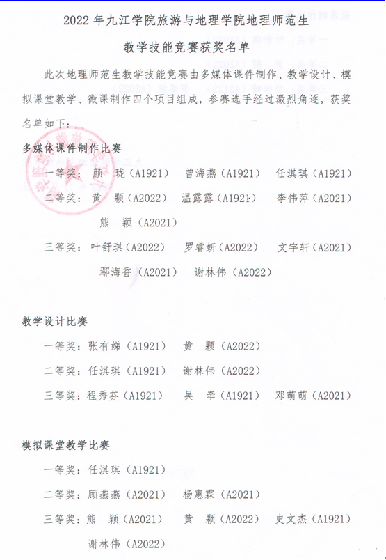 本次比赛精彩纷呈,参赛选手通过教学技能和教学艺术的展示,充分展现出公司地理师范生过硬的专业素质和良好的教学风貌,为日后教育工作的顺利开展打下坚实的基础,也为参加省内比赛、国家级比赛选手选拨提供了重要依据。