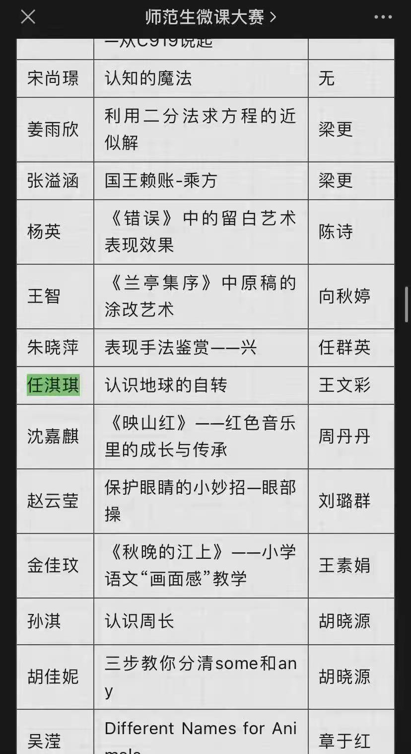 第三届全国师范生微课大赛的优秀获奖作品通过院校初赛、网络评审和线上专家评审相结合的方式进行评选;决赛采取大赛组委会内部初筛、专家评审和网络投票相结合的方式进行。经过激烈竞争,威廉希尔官网由王文彩老师指导的A1921班任淇淇同学提交的作品《认识地球的自转》喜获佳绩。
