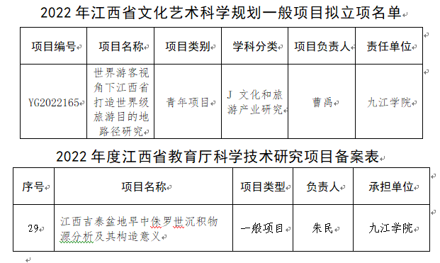 2022年,学院科研建设再创佳绩,获省自然科学基金项目1项、省社会科学“十四五”基金项目2项,省基础教育研究课题1项、省文化艺术科学规划项目1项,江西省教育厅科学技术研究项目1项,市工信局、市社联项目7项、一些项目立项结果还未公布。2022年,学院全体教师共发表论文6篇,其中SCI1篇,CSSCI 1篇,CSCD3篇;专利2项。