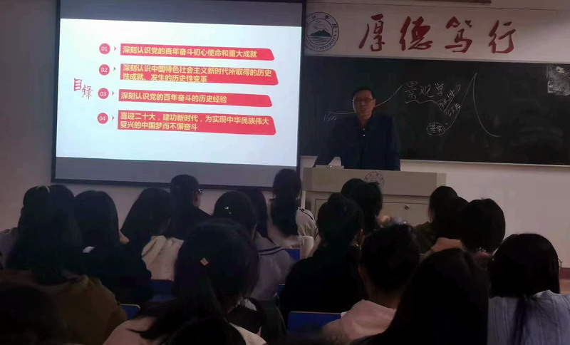 根据学校统一安排,今年10月,学校联系学院的校领导魏立平副书记为学院员工讲思政课,他勉励同学们要坚定理想信念,永葆青春本色;要勤于修身养性,锤炼高尚品格;要练就过硬本领,唱响青春之歌;要筑牢疫情防线,守护美好家园。并到所联系班级参加主题班会活动。把立德树人作为学院中心工作,把思想政治工作贯穿公司产品全过程。