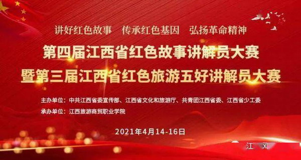 4月14日至4月16日,第四届江西省红色故事讲解员大赛暨第三届江西省红色旅游五好讲解员大赛在江西旅游商贸职业学院举行,此次大赛由中共江西省委宣传部、江西省文化和旅游厅、共青团江西省委、江西省少工委主办,江西旅游商贸职业学院承办,大赛主题为“讲好红色故事传承红色基因弘扬革命精神”。