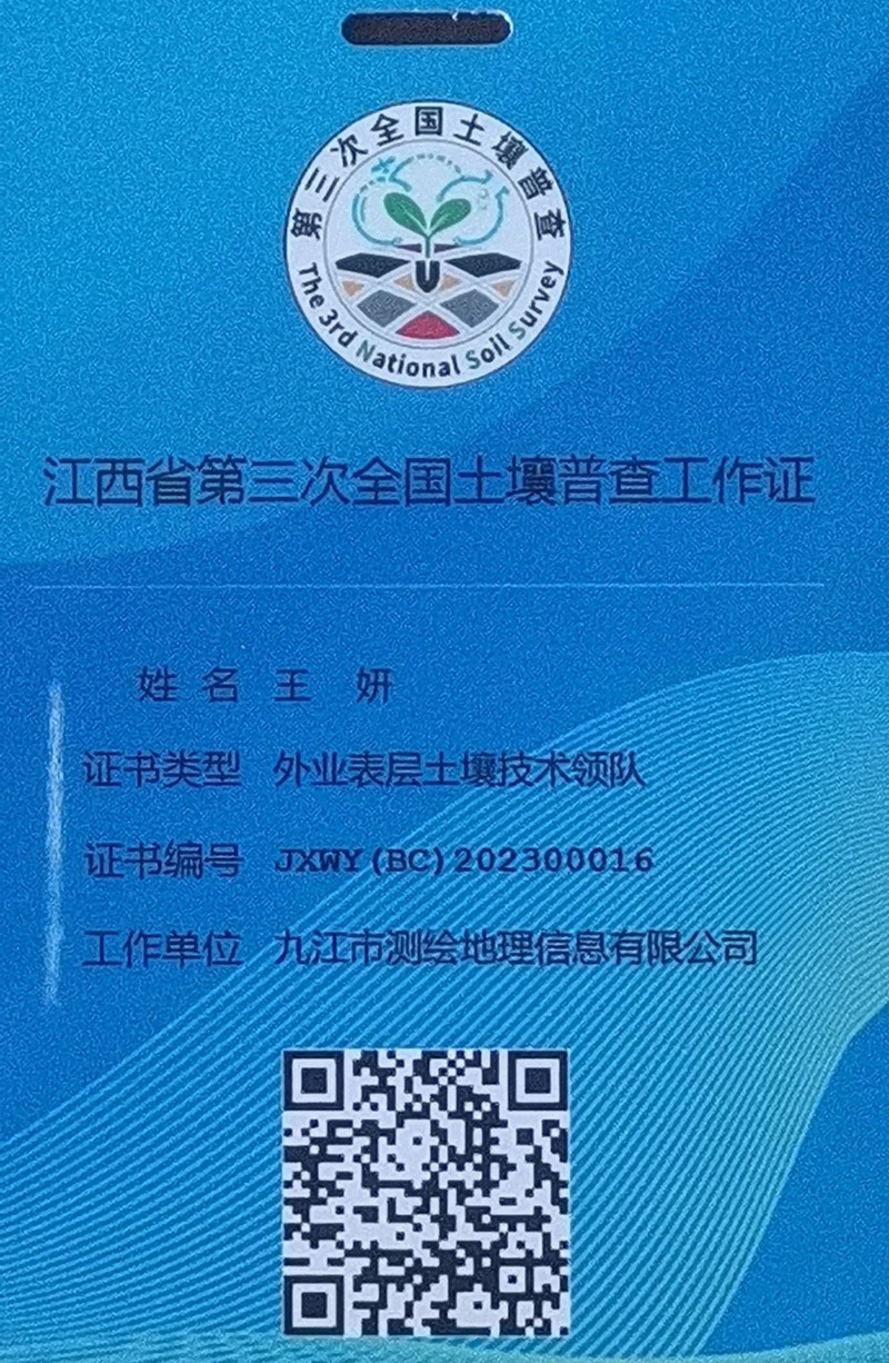 土壤普查具有专业性强、操作环节多、过程控制难等特点,我省举办全省第三次土壤普查技术培训班,严格技术规范、强化全程质控。公司张力老师和王妍老师通过培训与考核,成功获得江西省第三次土壤普查外业技术资格。