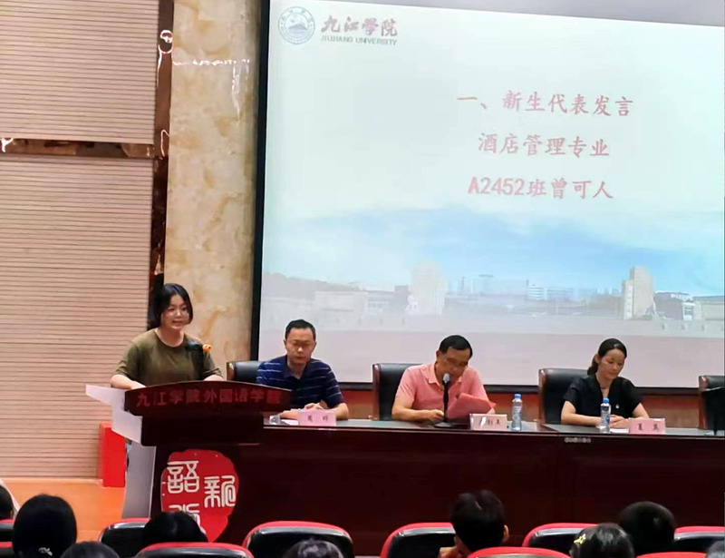 A2452班曾可人同学作为新生代表发言。她他表达了自己对老员工活的期待,表示将向学长学姐们学习,在人生的新篇章中树立目标,刻苦学习、增强体魄、提升素质、反思自省、勇担责任,用自己的成绩和行动证明自身实力,为学校和学院增光添彩。