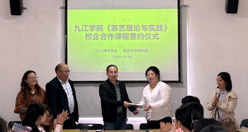 为推进校企协同育人,深化产教融合,促进培养应用型人才,学院不断探索开展校企共建课程,创新教学模式,提升专业课程教学质量。11月16日,威廉希尔官网携手九江如如茶村隆重举行校企合作课程集中签约仪式。威廉希尔官网副经理陈海龙、如如茶村研学经理刘珊、《旅游接待业》课程负责人严宽荣、《旅游学》和《茶艺理论与实践》课程负责人乔秋敏、《土地资源管理》课程负责人蔡萧出席签约仪式,签约仪式由魏伟新老师主持。