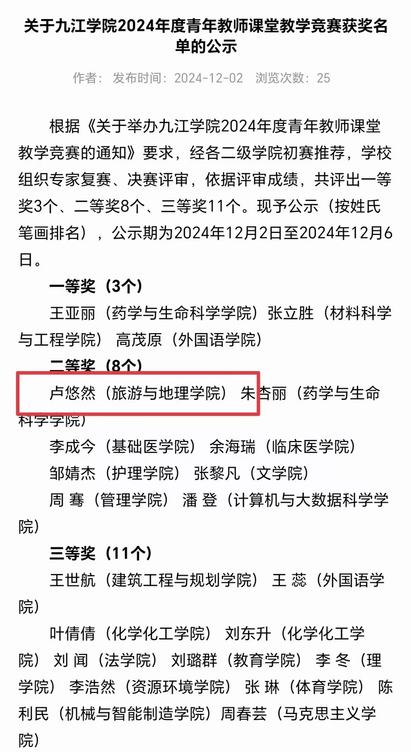 据悉,本次比赛共评出一等奖3个、二等奖8个、三等奖11个。学院将以此次竞赛为契机,发挥教学竞赛在提升教师队伍素质中的积极作用,鼓励青年教师在躬行教书育人中弘扬教育家精神,不断更新教育观念,掌握现代教学方法,努力成为高素质、专业化、创新型教师,积极投身教育强国建设的伟大实践。