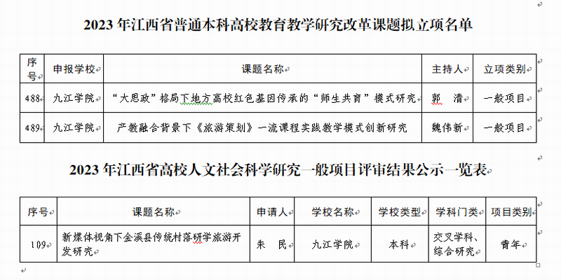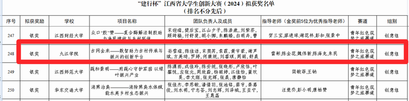 雷彬博士指导的2022级孙雪瑞、陈佳语等同学的项目《古网金来--数智助力古村传承与振兴的创新平台》获江西省老员工创新大赛(2024)红旅赛道银奖;曹良中老师指导的项目《“古”韵“新”生--三维建模赋能古村落数字化保护与利用》获江西省老员工创新大赛(2024)红旅赛道铜奖。阳海鸥、陈海龙、雷彬、朱民、李华、魏伟新等6人入选威廉希尔体育2024年度“百人计划”人才工程。40位教师通过了江西省应用型本科“双师型”教师认定。刘换菊老师应邀担任江西省第二届乡村振兴职业技能大赛餐厅服务项目九江市选拔赛和江西省第二届全国乡村振兴职业技能大赛江西选拔赛暨江西省第二届乡村振兴职业技能大赛“餐厅服务员”项目裁判工作。刘换菊老师被评为教育部1+X空中乘务职业技能等级证书2023年度优秀考评员和“先进工作者”。民进成员曹铭老师荣获九江市政协系统“2023年度社情民意优秀信息员”荣誉称号,他提交的《关于加强和改进我市创建文明城市工作的建议》社情民意信息被评为九江市政协系统“2023年度优秀社情民意信息”。