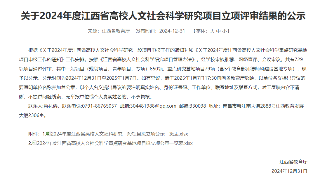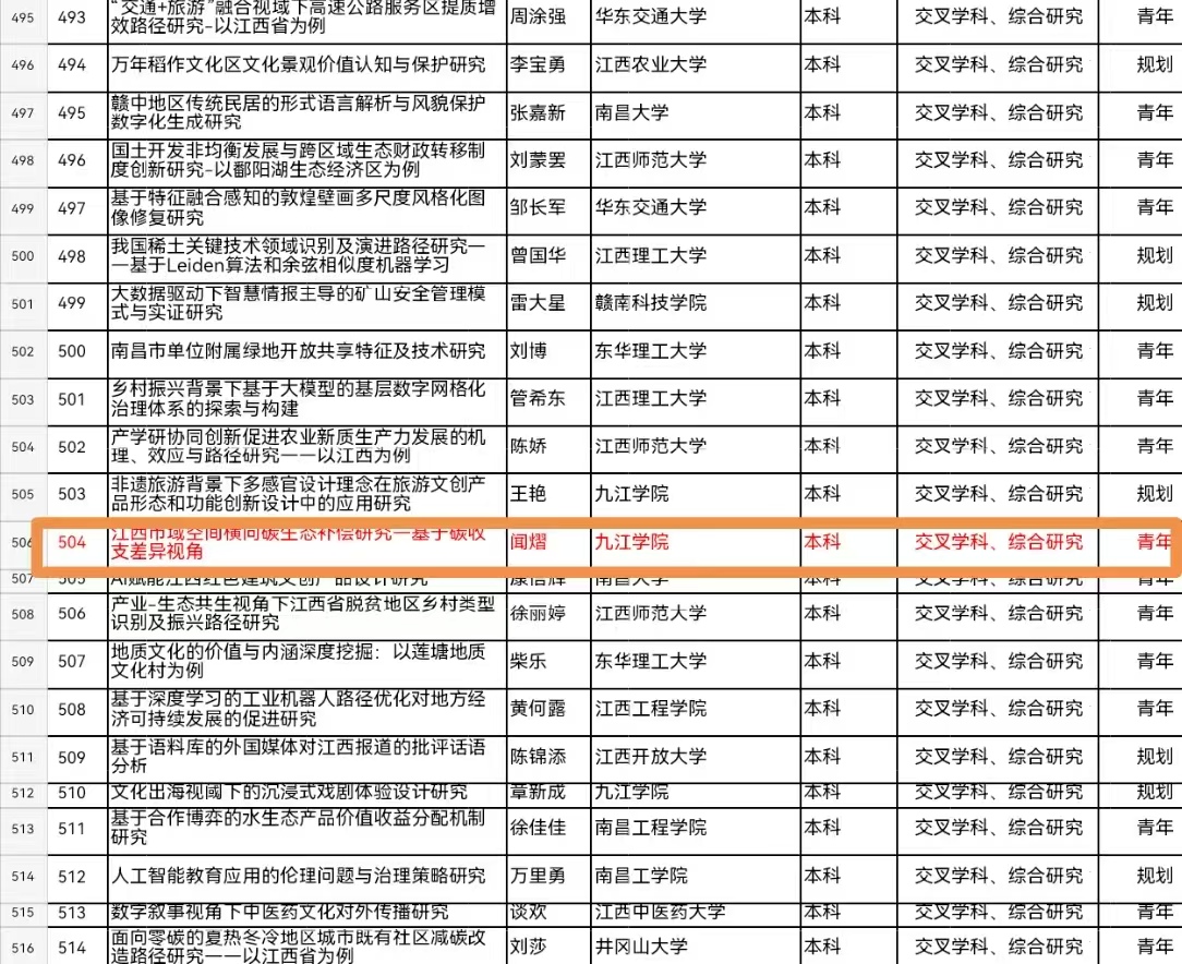 经个人申报、学校初审、省教育厅专家严格评审,近日,江西省教育厅公布了《关于2024年度江西省高校人文社会科学研究项目立项评审结果的公示》,公司闻熠博士主持的课题《江西市域空间横向碳生态补偿研究—基于碳收支差异视角》获批2024年度江西省高校人文社会科学研究青年项目。特此表示祝贺!